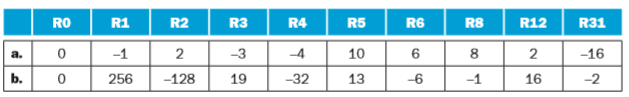 4.11.3 [10] <4.4> What is the new PC address after this instruction is executed? Highlight the path through which this value is determined. The remaining problems in this exercise assume that data memory is all zeros and that the processor’s registers have the following values at the beginning of the cycle in which the above instruction word is fetched: | |