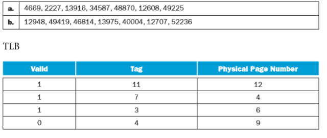 As described in Section 5.4, virtual memory uses a page table to track the mapping of virtual addresses to physical addresses. This exercise shows how this table must be updated as addresses are accessed. The following table is a stream of virtual addresses as seen on a system. Assume 4 KB pages, a 4­entry fully associative TLB, and true LRU replacement. If pages must be brought in from disk, increment the next largest page number.