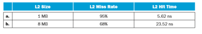5.7.3 [5] <5.3> Assuming a base CPI of 1.0 without any memory stalls, what is the total CPI for P1 and P2? Which processor is faster? For the next three problems, we will consider the addition of an L2 cache to P1 to presumably make up for its limited L1 cache capacity. Use the L1 cache capacities and hit times from the previous table when solving these problems. The L2 miss rate indicated is its local miss rate. | |