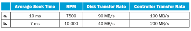 Average and minimum times for reading and writing to storage devices are common measurements used to compare devices. Using techniques from Chapter 6, calculate values related to read and write time for disks with the following characteristics.