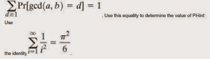 8.2 The purpose of this problem is to demonstrate that the probability that two random numbers are relatively prime is about 0.6. Let P = Pr[gcd(a, b) = 1]. Show that Pr[gcd(a, b) = d] = P/d2 Hint: Consider the quantity gcd (a/d , b/d) b. The sum of the result of part ( a) over all possible values of d is 1. That is: | |