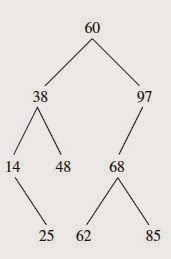 9.5 For the following binary tree, show the order in which elements would be visited for an inOrder, postOrder, preOrder, and breadthFirst traversal.