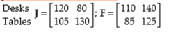 10. An office furniture company manufactures desks and tables at two plants, A and B. Matrix J represents the production of the two plants in January, and matrix F represents the production of the two plants in February. Use the matrix operations on a graphing calculator to write a matrix that represents the total product at the two plants for the two months. | |