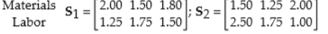 11. A pharmaceutical company manufactures 3 drugs for high blood pressure, A, B, and C, each of which requires a 2-step production process. The production cost of each drug has a materials and labor component. If the matrices S1 and S2 represent the costs per ounce associated with each step, use the matrix operations on a graphing calculator to write a matrix that shows the total cost of the two steps. | |
