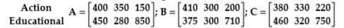 25. Use the matrix operations on a graphing calculator to calculate the new demand matrix in his model. Let matrix A represent the sales (in thousands of dollars) of a toy company in 1994 in three cities, let B represent the sales in the same cities in 1995, and let C represent the sales in the same cities in 1996. What is the change in sales between 1994 and 1995? | |